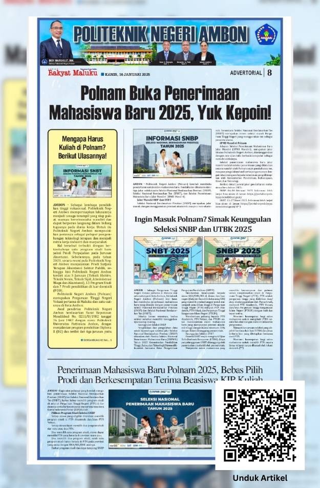Hunas, Polnam – Pendaftaran Bakal Calon Direktur Politeknik Negeri Ambon (Polnam) Masa Jabatan 2026-2030 resmi dibuka mulai Senin (5/1/2026). Adapun persyaratan Bakal Calon Direktur Polnam sesuai Permenristekdikti No.19/2017, dan 21/2018